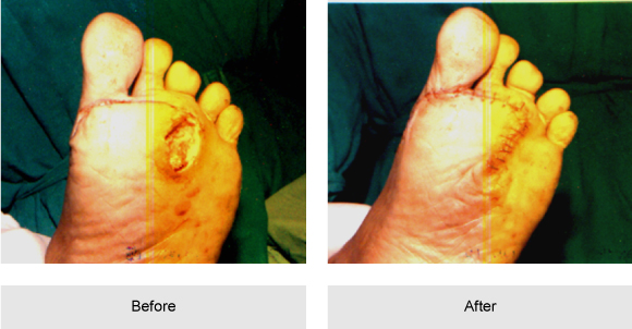 of ulcers on the foot.