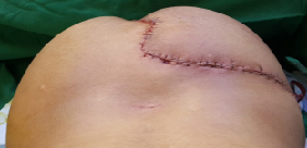 methylene blue dye, and closure using rotation flap.
